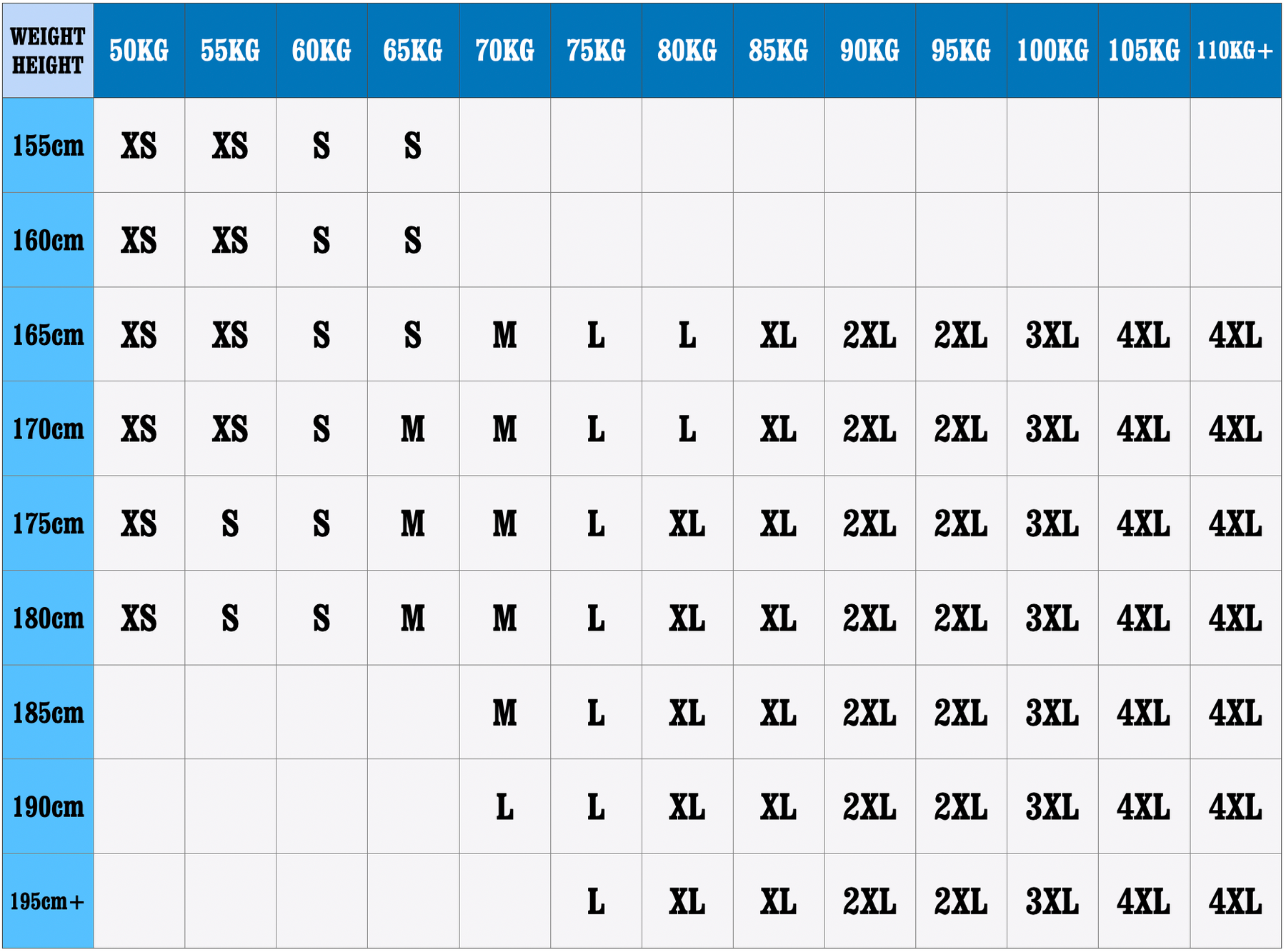 • Size Options: XS, S, M, L, XL, 2XL, 3XL, 4XL