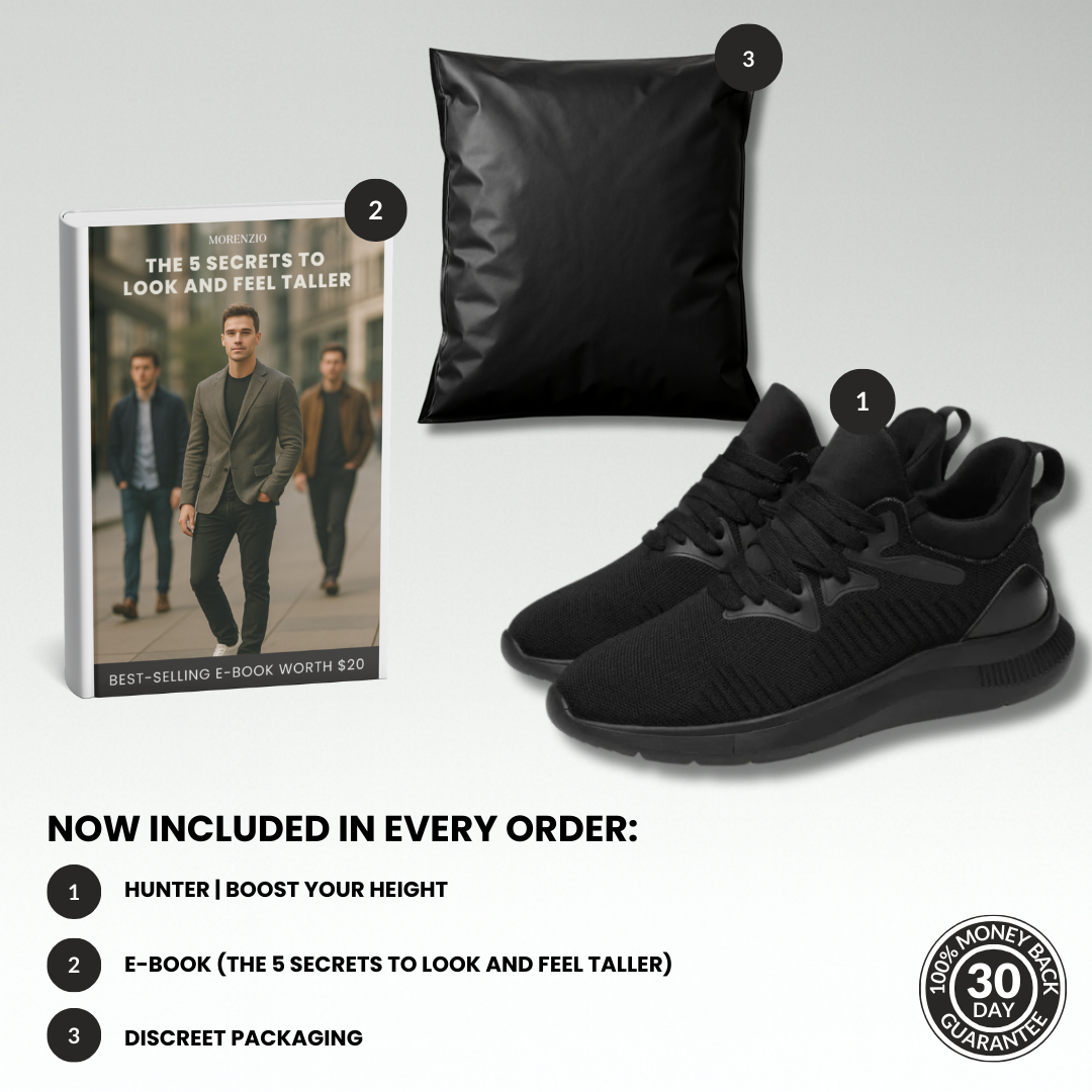 The Hunter fuses a modern runner silhouette with premium materials — delivering a discreet height boost and a dynamic look for men who want to stand out, not blend in.